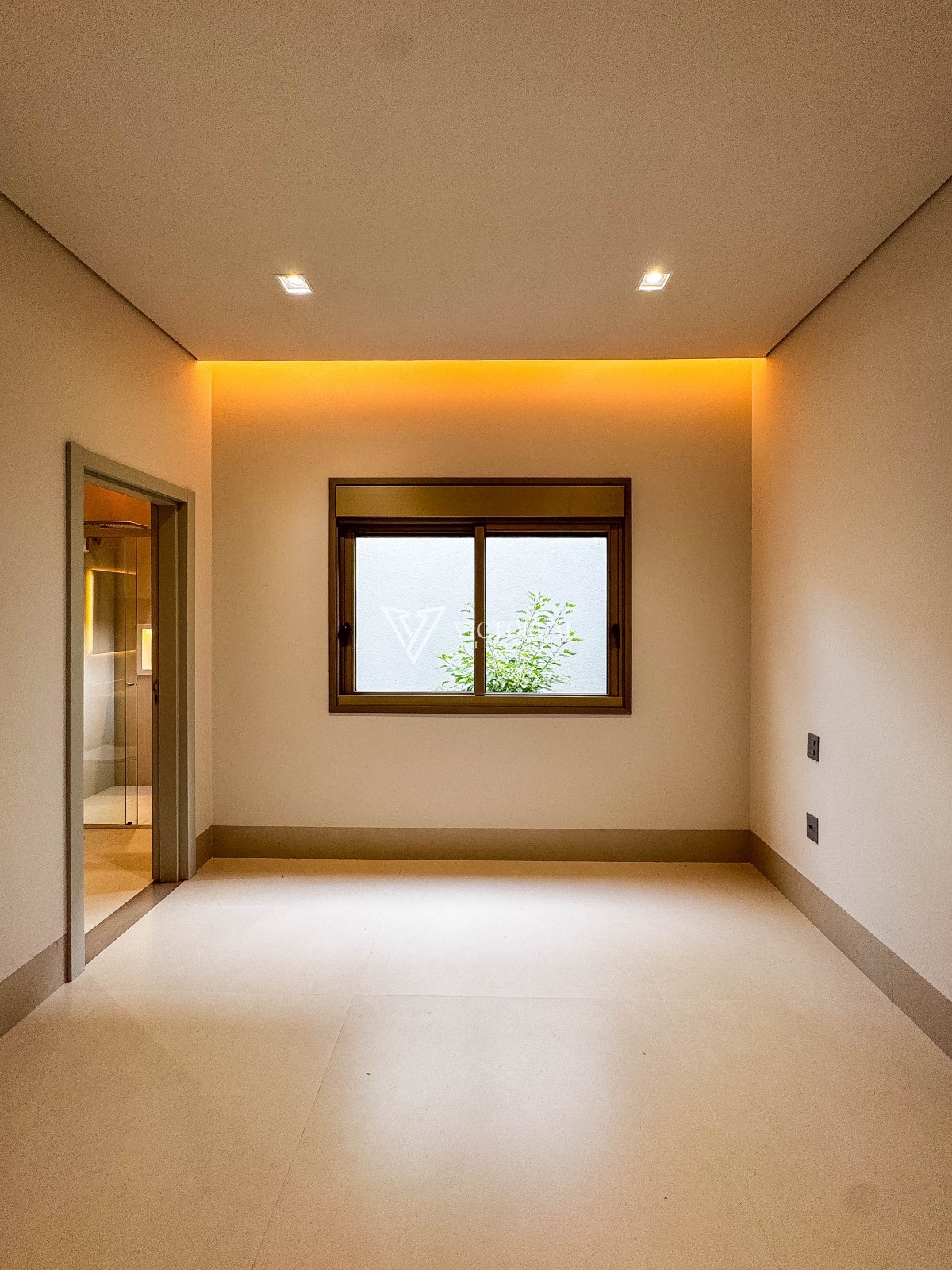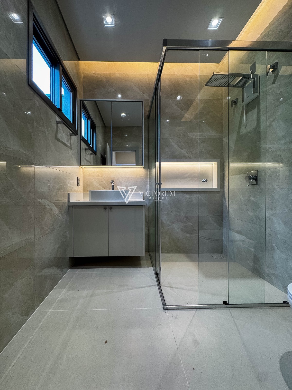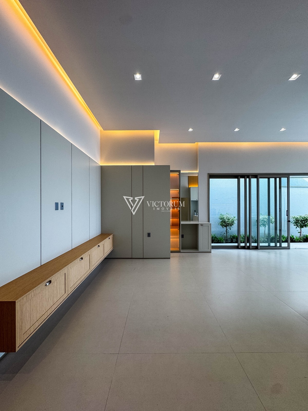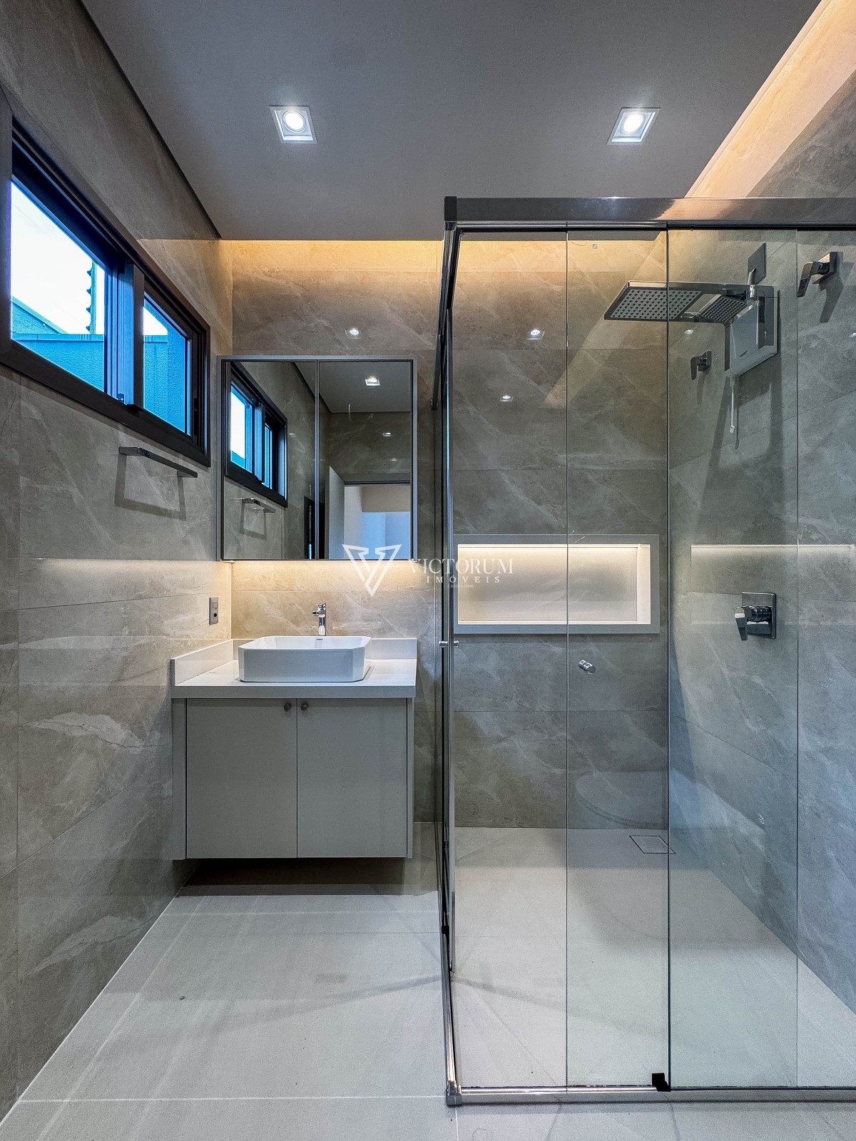 Aberturas em vidro com esquadrias de alumínio na cor Perita;