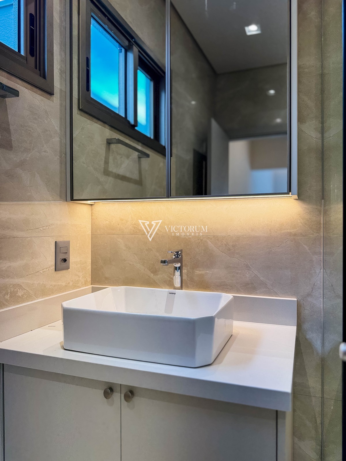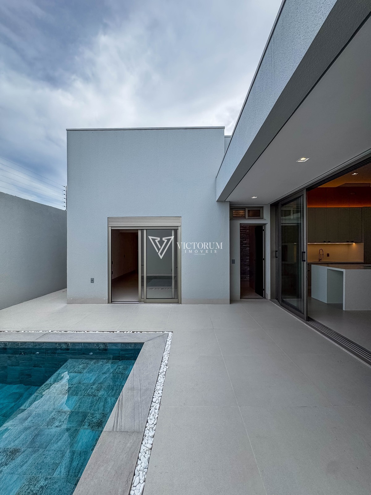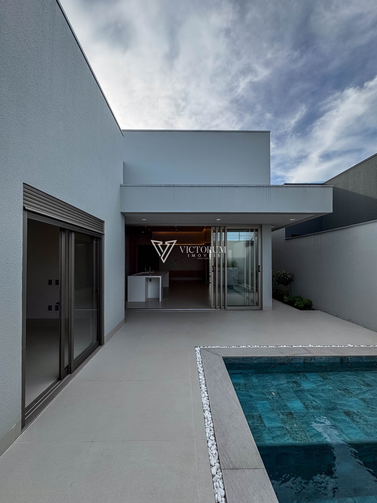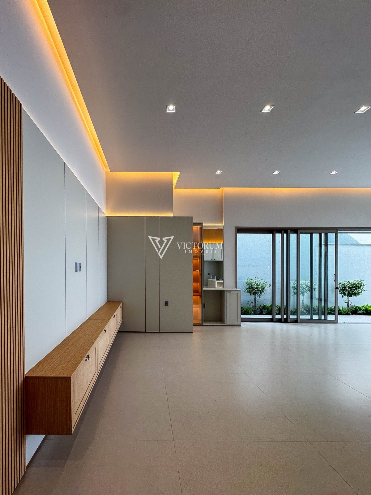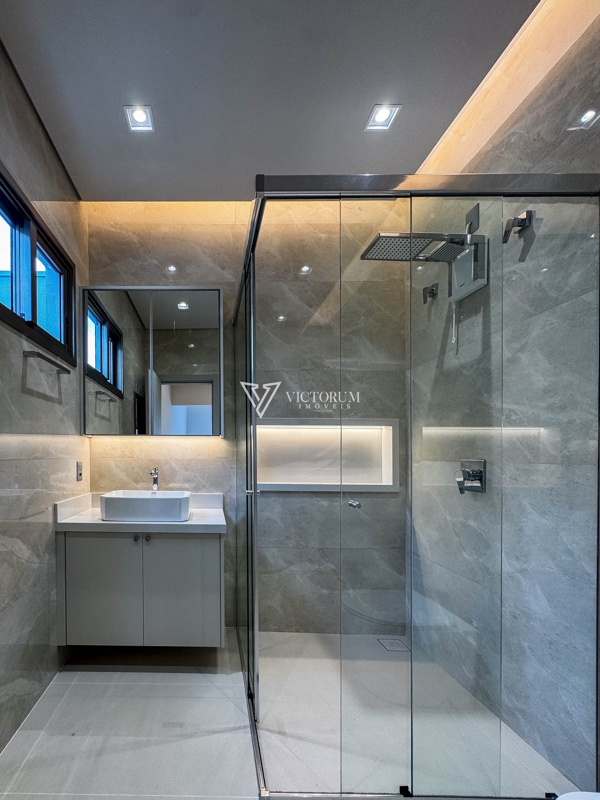 Aberturas em vidro com esquadrias de alumínio na cor Perita;