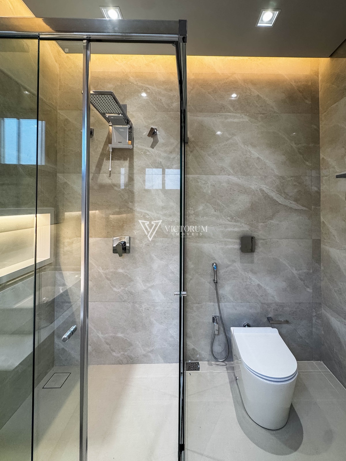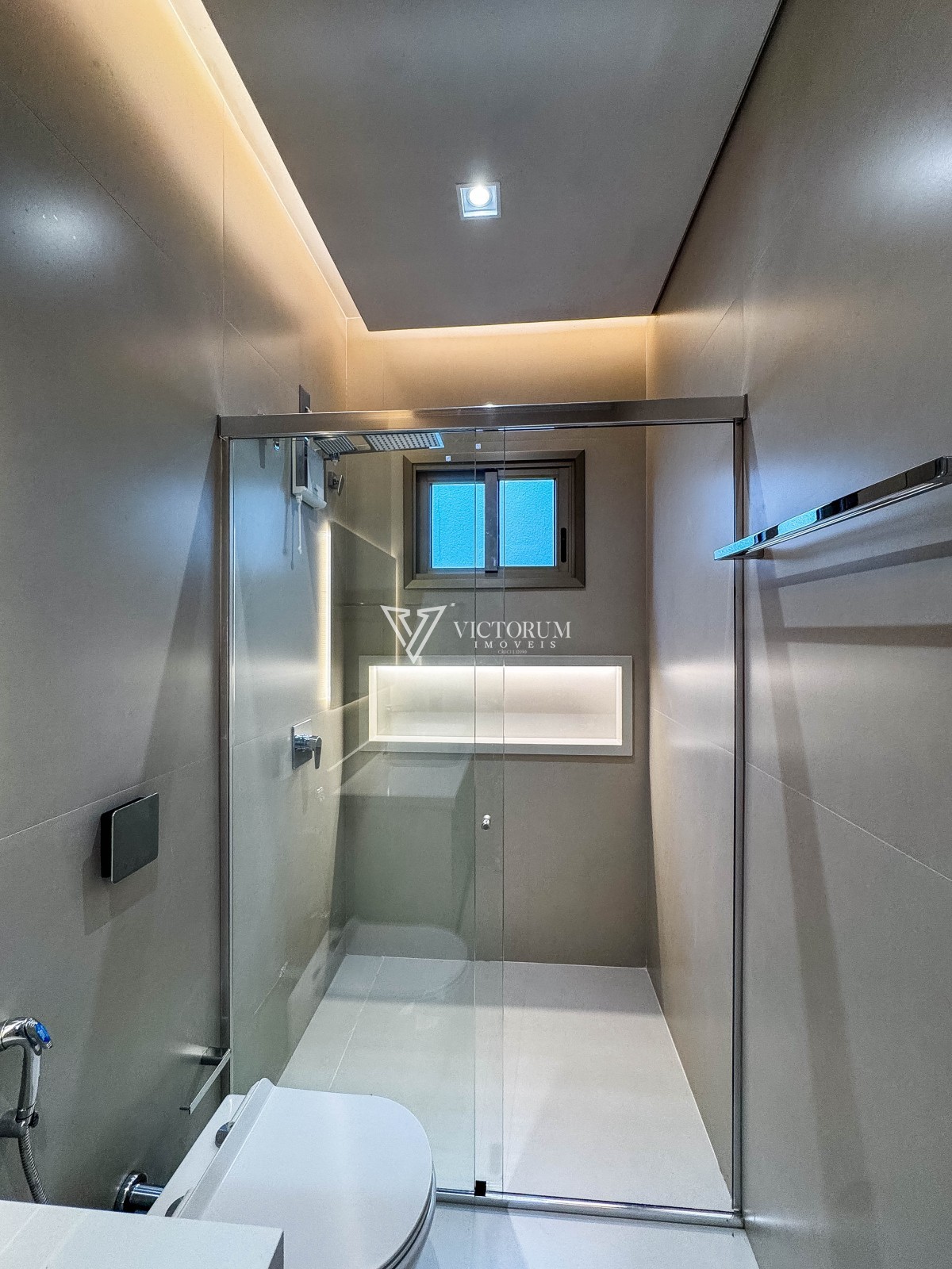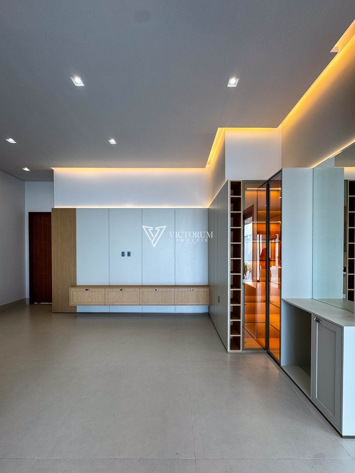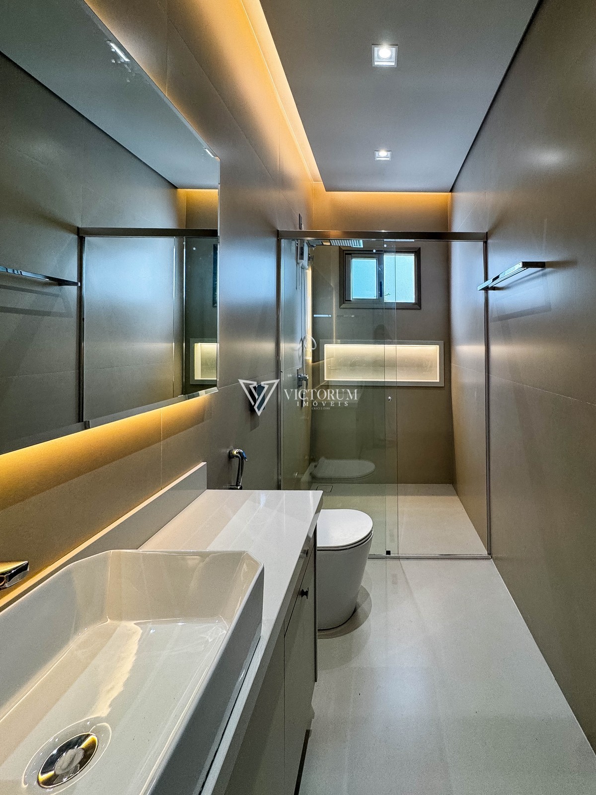 Aberturas em vidro com esquadrias de alumínio na cor Perita;